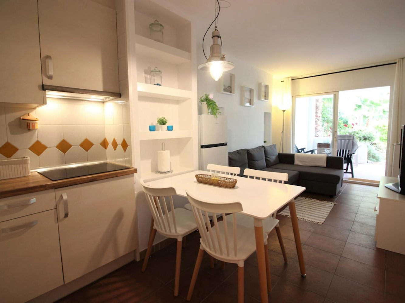 Ferienwohnung in Rosas, Santa Margarita: 1 Schlafzimmer, 1 Bad, Terrasse mit Zugang zum Pool, moderne Ausstattung – ideal für Urlaub an der Costa Brava.