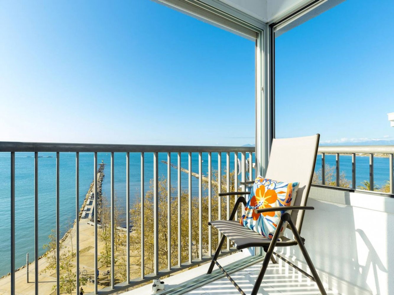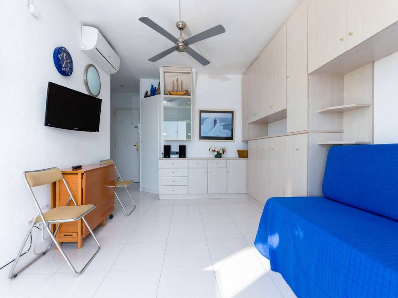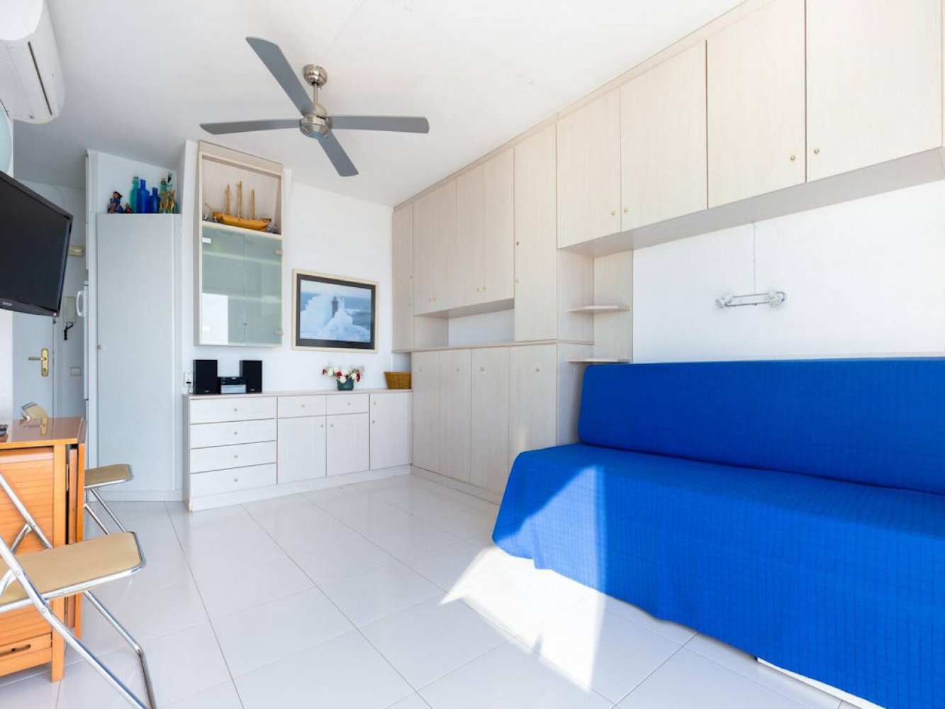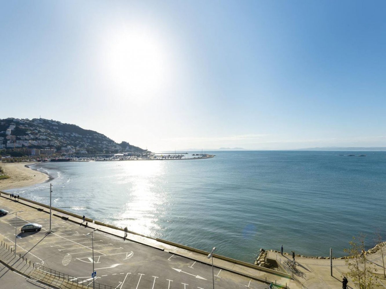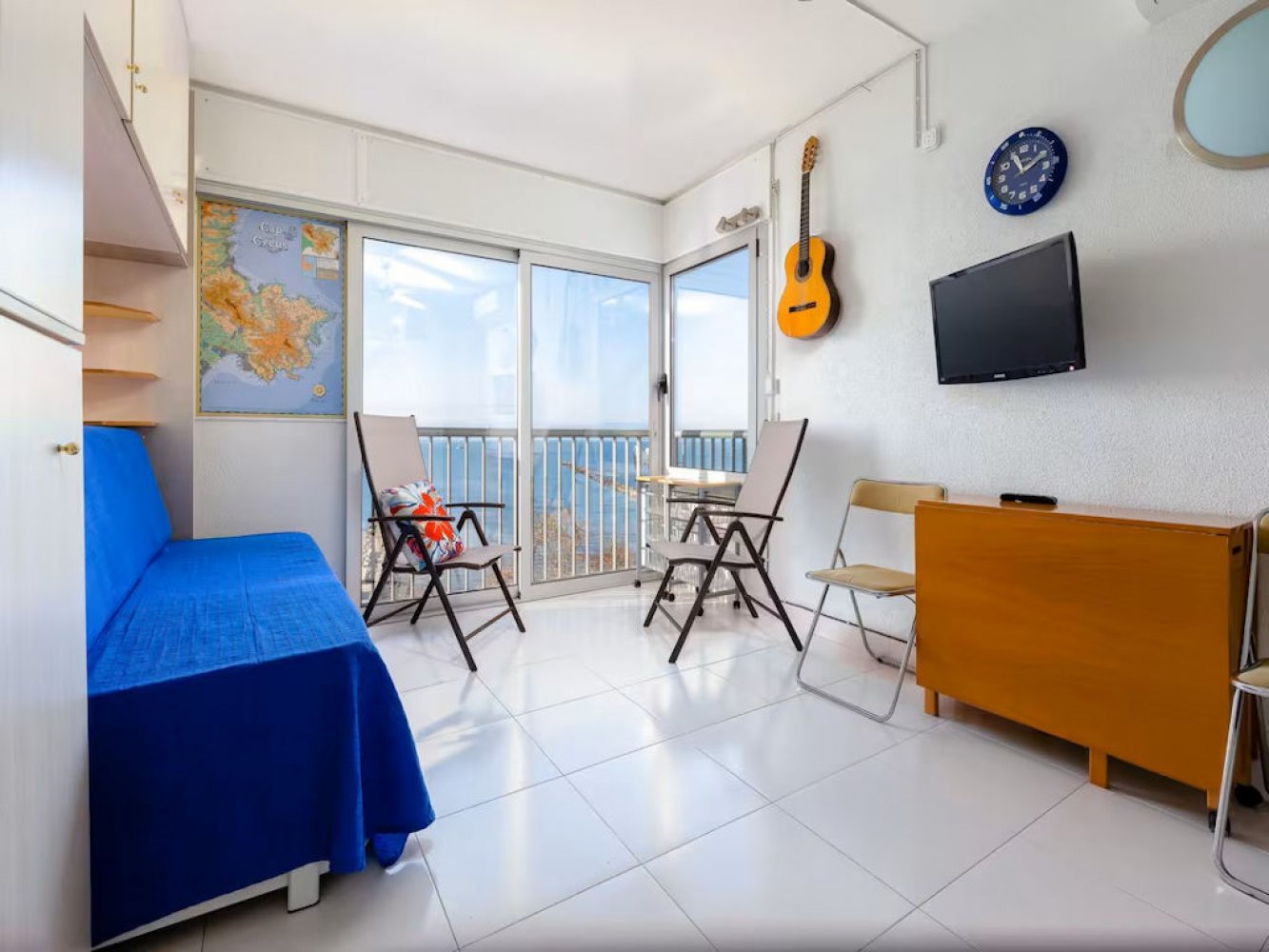 Charmantes Studio, nur 20 Meter vom Strand und der malerischen Strandpromenade des Ferienorts Roses an der Costa Brava entfernt, mit fantastischem Panoramablick auf die Bucht von Roses und das Mittelmeer.
