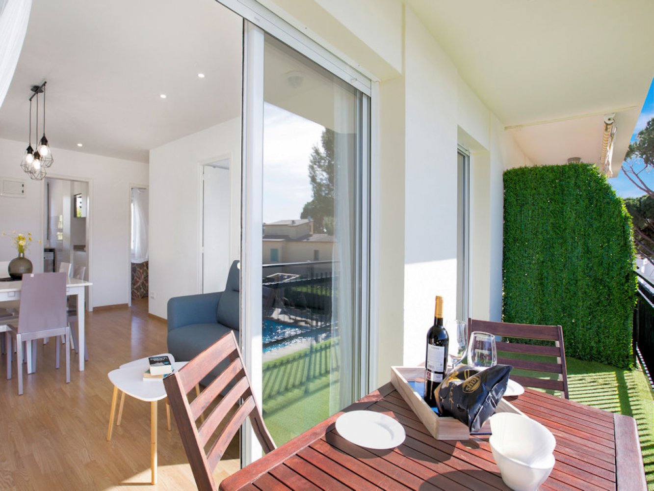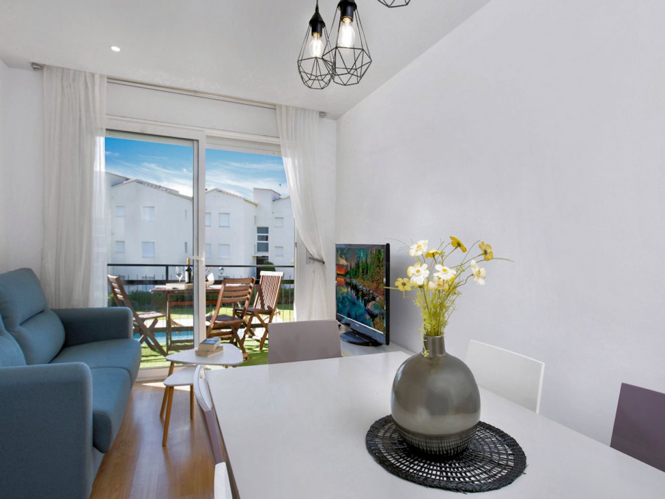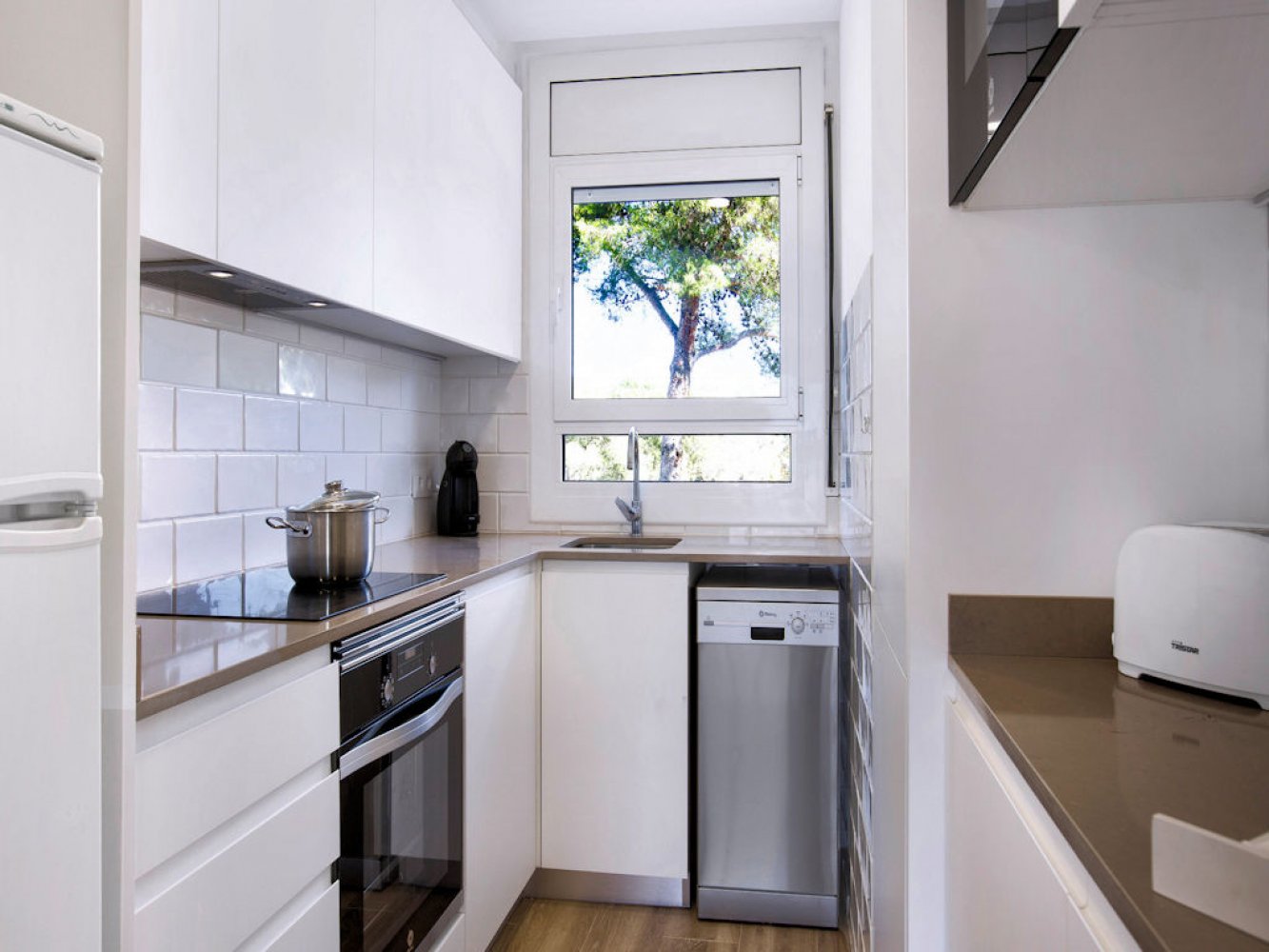 Moderne Ferienwohnung, nur 500 Meter vom Strand in Calella de Palafrugell an der Costa Brava entfernt. Das Appartement liegt in einer gepflegten mediterranen Ferienanlage mit großzügiger Liegewiese, Außenduschen und einem großen Schwimmbad.