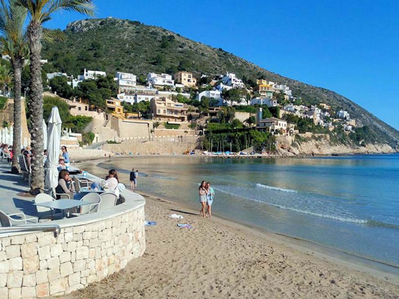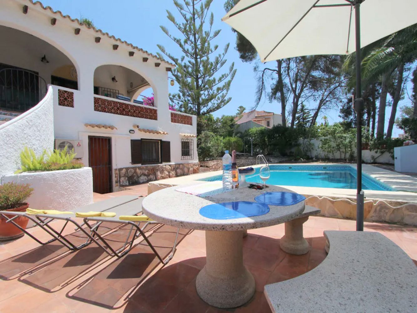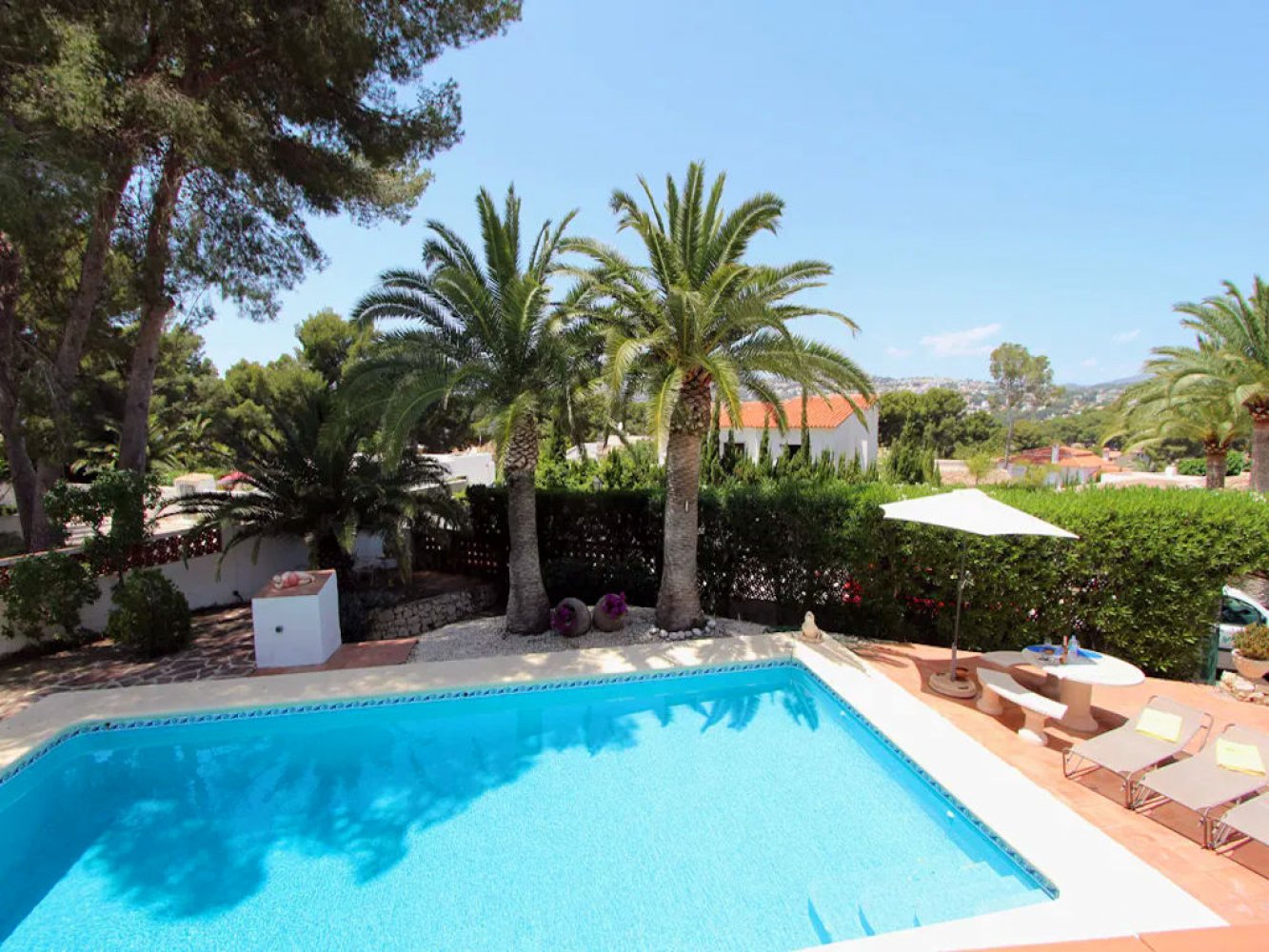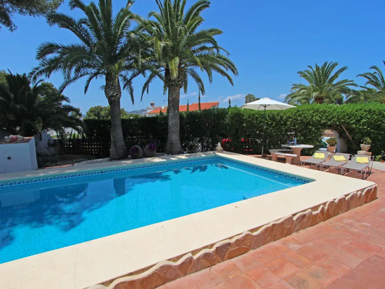 Mediterrane Ferienvilla mit privatem Swimmingpool in Moraira an der Costa Blanca. Das Anwesen liegt nur 500 m vom Sandstrand Playa de l'Ampolla des Ferienortes entfernt.