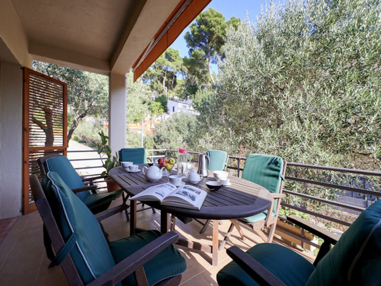 Das Appartement mit separatem Eingang liegt im ersten Stock und verfügt über einen lichtdurchfluteten Wohn- und Essbereich mit Kamin und Fernseher, eine voll ausgestattete Küche inklusive Waschmaschine, drei Doppelschlafzimmer (eines davon mit Ausziehbett), ein Einzelschlafzimmer sowie ein modernes Badezimmer. Vom Wohn- und Essbereich haben Sie direkten Zugang zu einem Balkon mit Blick auf die mediterrane Umgebung. Auf dem abgeschlossenen Grundstück mit dem gepflegten mediterranen Garten finden Sie einen gemauerten Grillbereich, eine großzügige Grillterrasse, eine Kinderschaukel und einen privaten Parkplatz.