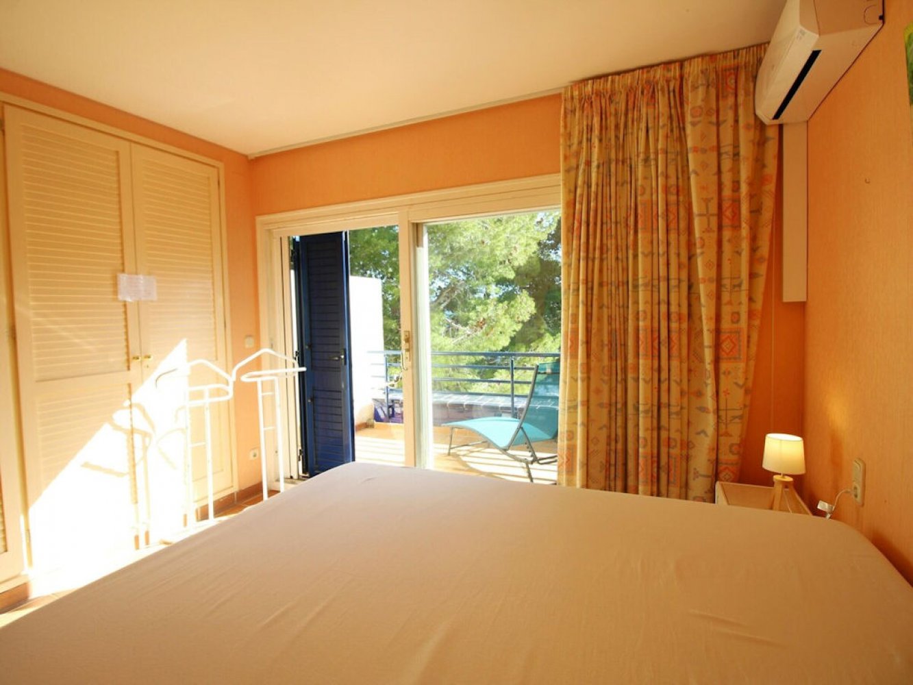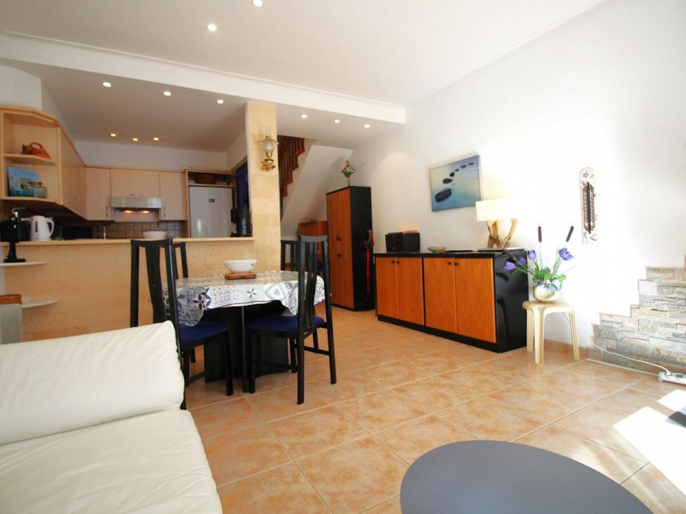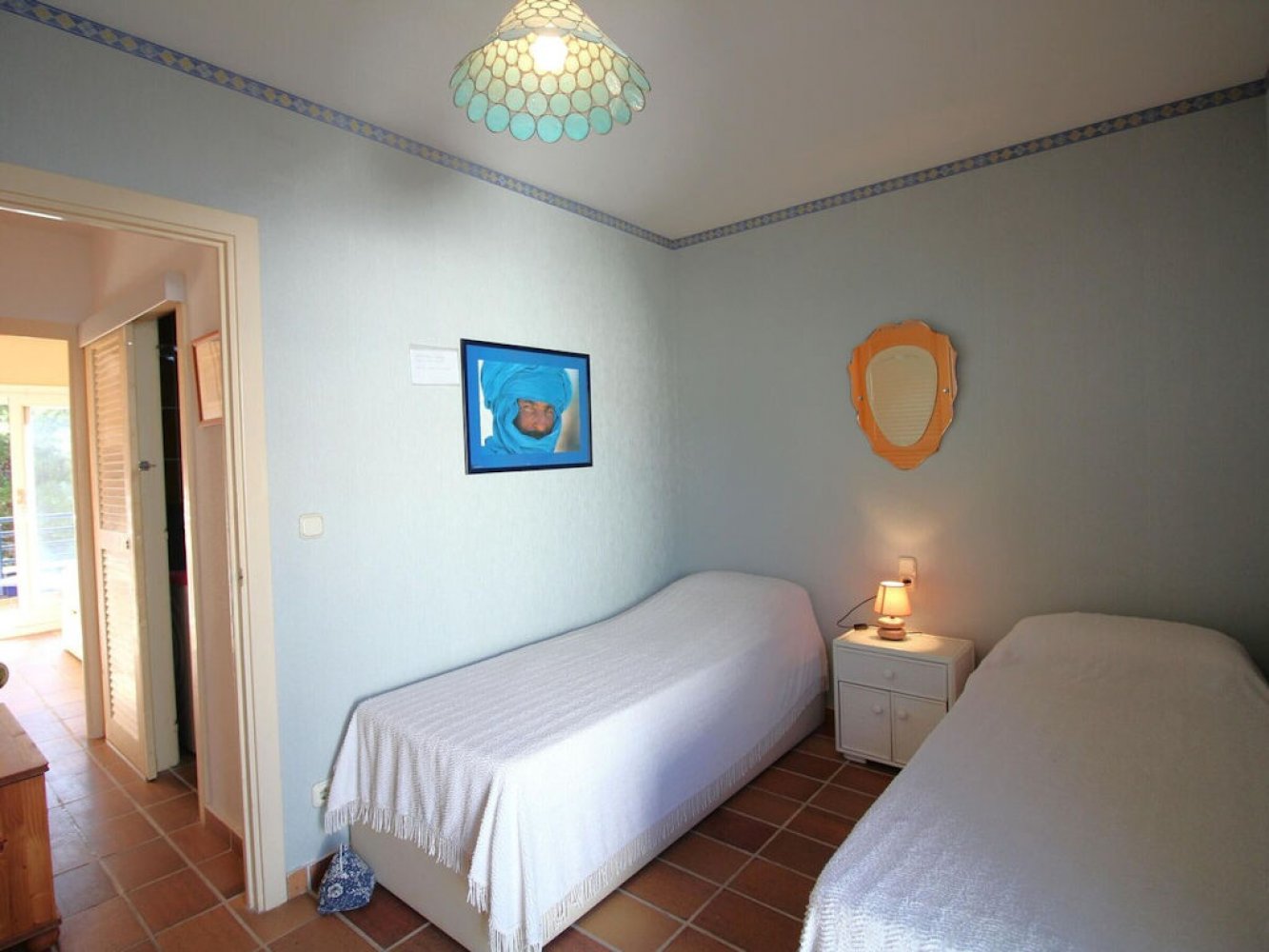 The villa is spread over two floors. On the ground floor, you will find a bright and airy living and dining area with a fireplace and TV, as well as a modern, fully equipped kitchen with dishwasher, washing machine, and dryer. There is also a double bedroom and a modern bathroom. From this area, you can step out onto the large terrace, offering fantastic sea views and direct access to the beach. Upstairs, there are two double bedrooms and another modern bathroom.