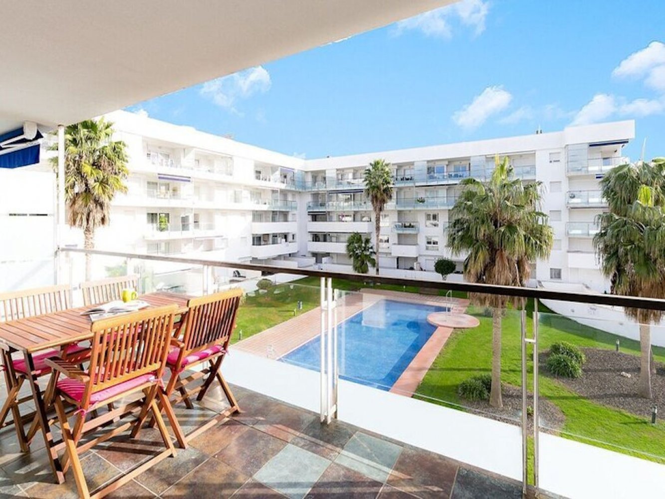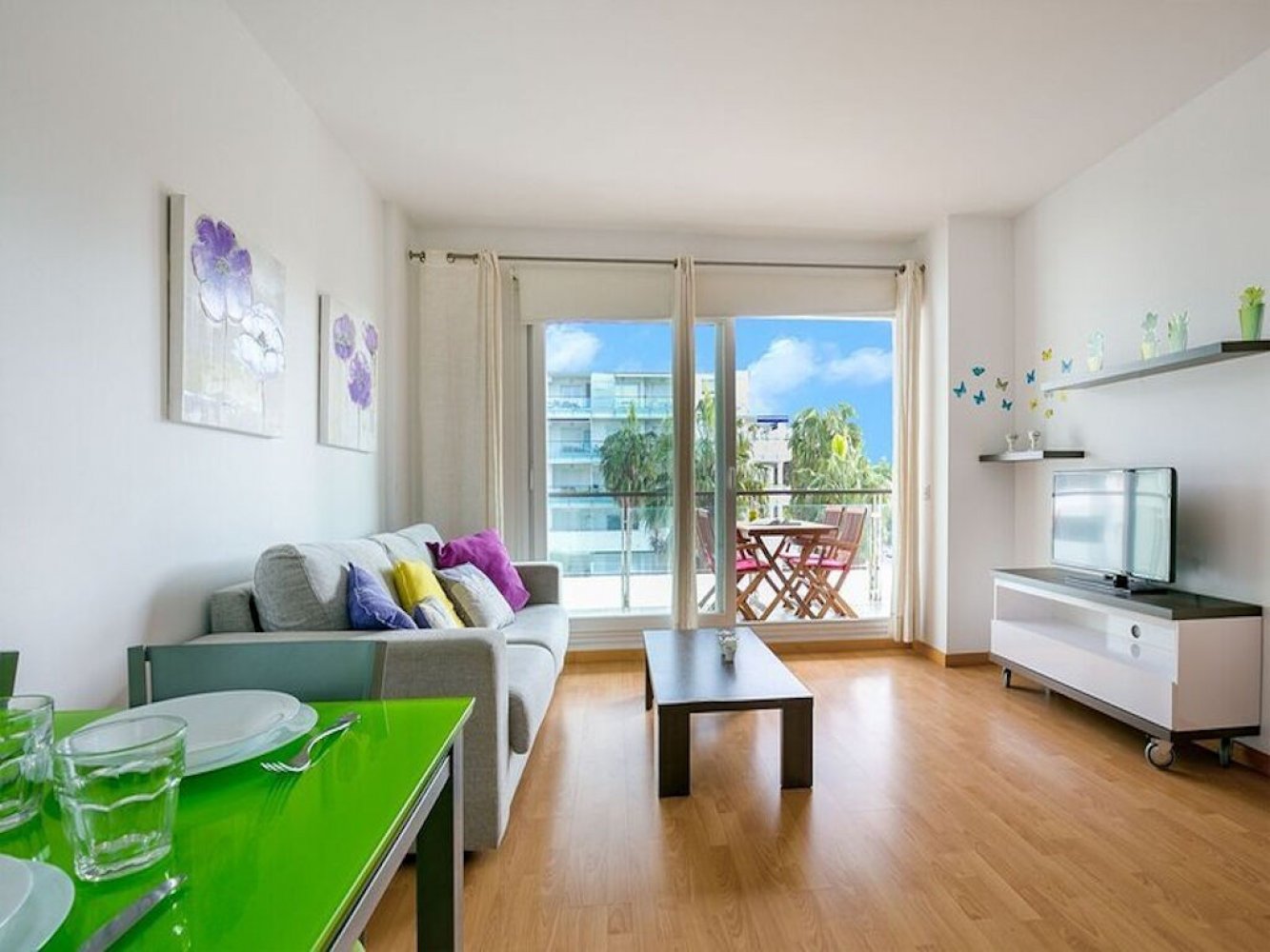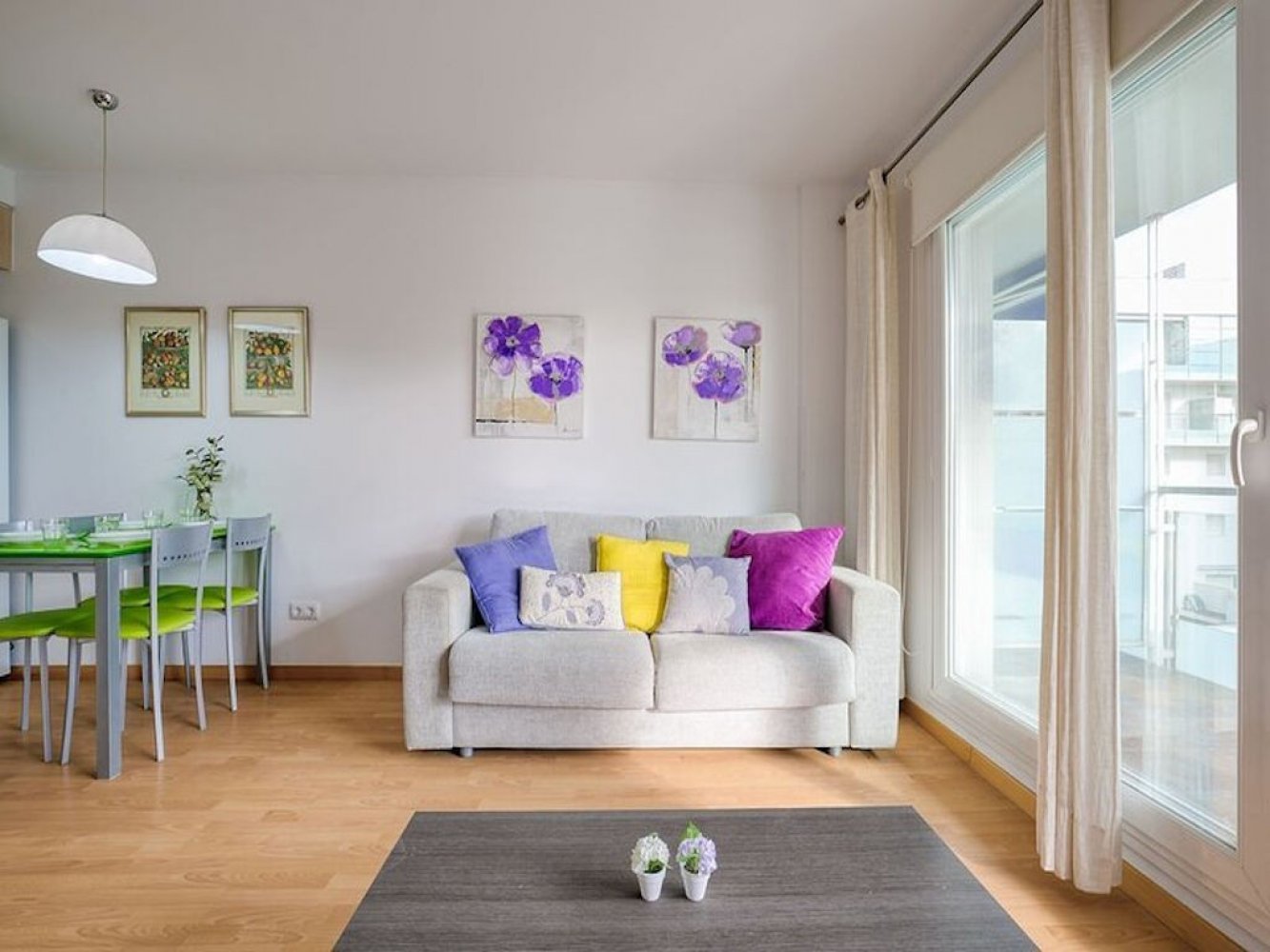 Moderno apartamento vacacional en el barrio de Santa Margarita, en Roses, en la Costa Brava. El apartamento forma parte de un complejo vacacional mediterráneo bien cuidado, con zona de césped para tomar el sol y una gran piscina comunitaria.