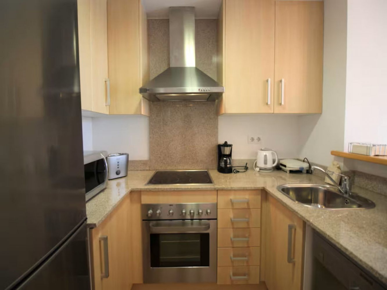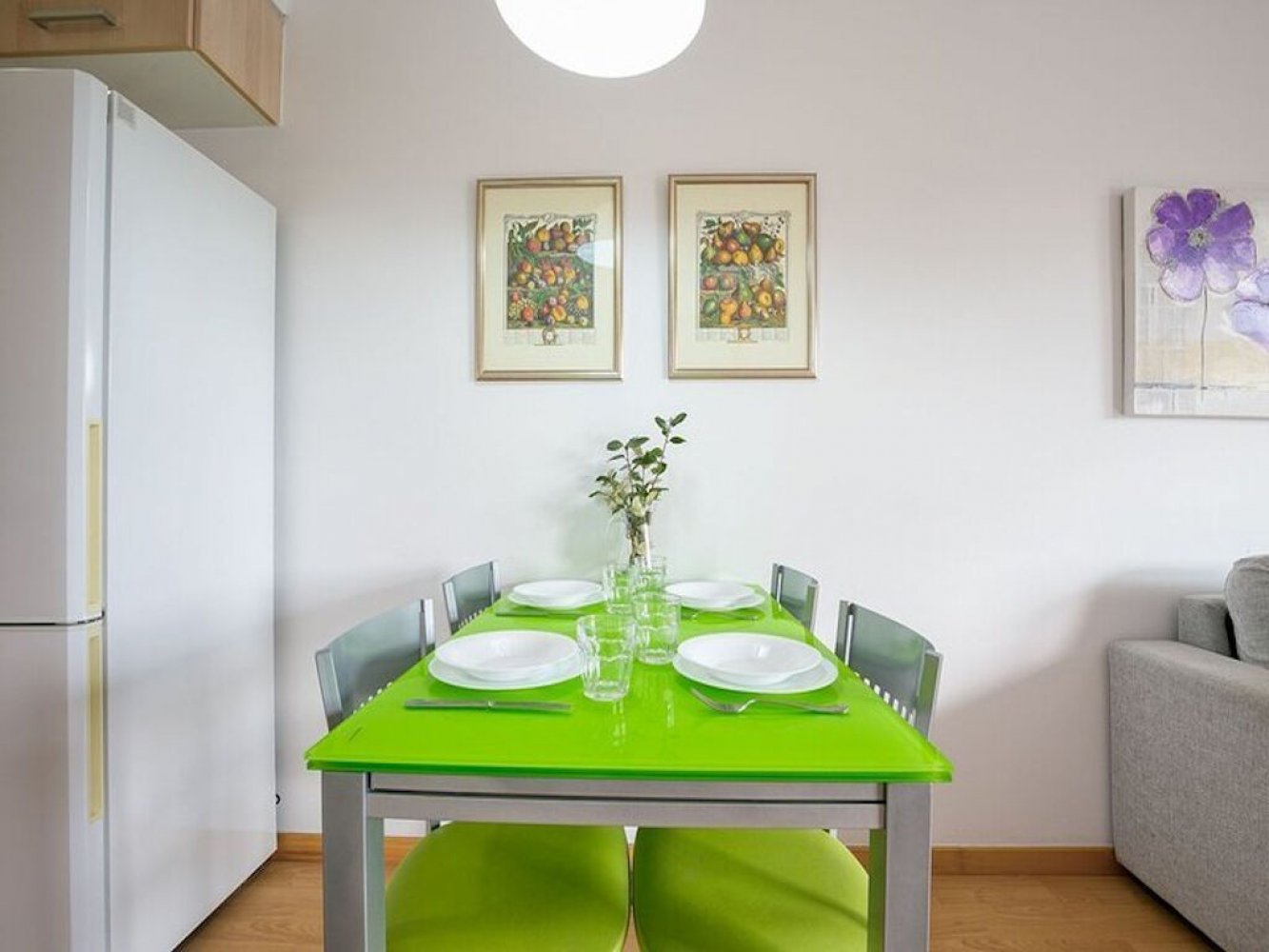 El apartamento se encuentra en la 2.ª planta y cuenta con un salón-comedor luminoso, equipado con sofá cama y TV. La cocina moderna y totalmente equipada incluye lavadora. El apartamento dispone de un dormitorio doble y un baño moderno. Desde el salón-comedor se accede a una agradable terraza con vistas al complejo vacacional. Se incluye una plaza de aparcamiento privada en el garaje subterráneo, con espacio de almacenamiento para bicicletas y cochecitos.