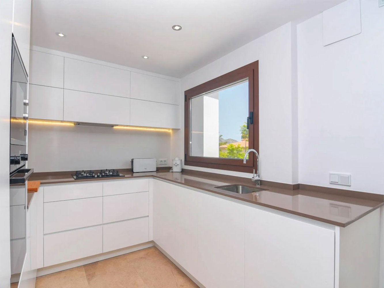 Cette spacieuse villa s’étend sur deux étages et comprend un salon-salle à manger lumineux avec cheminée et télévision satellite, une cuisine moderne entièrement équipée avec lave-vaisselle, un cellier avec lave-linge et sèche-linge, trois chambres doubles, trois salles de bain modernes ainsi qu’un WC séparé pour les invités. Depuis le salon-salle à manger, vous accédez à l’espace terrasse autour de la piscine et à une cuisine extérieure moderne.